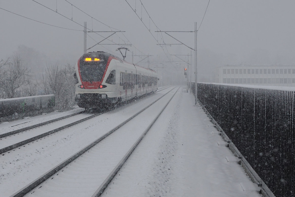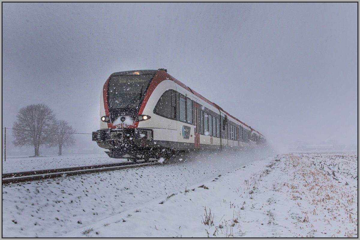 RABe 511 als IR35 Zürich-Bern bei Bollodingen am 11. Januar 2021. Foto: Walter Ruetsch
