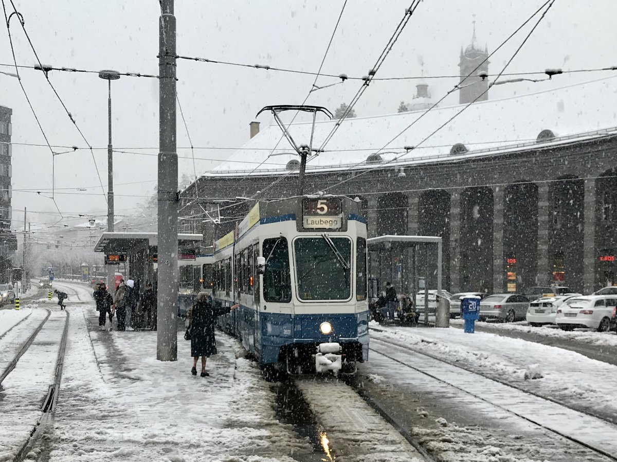 Linie 14 Wagennummer 2006 „Fluntern“ solo zwischen Hauptbahnhof und Löwenplatz. Datum: 13. 1. 2021