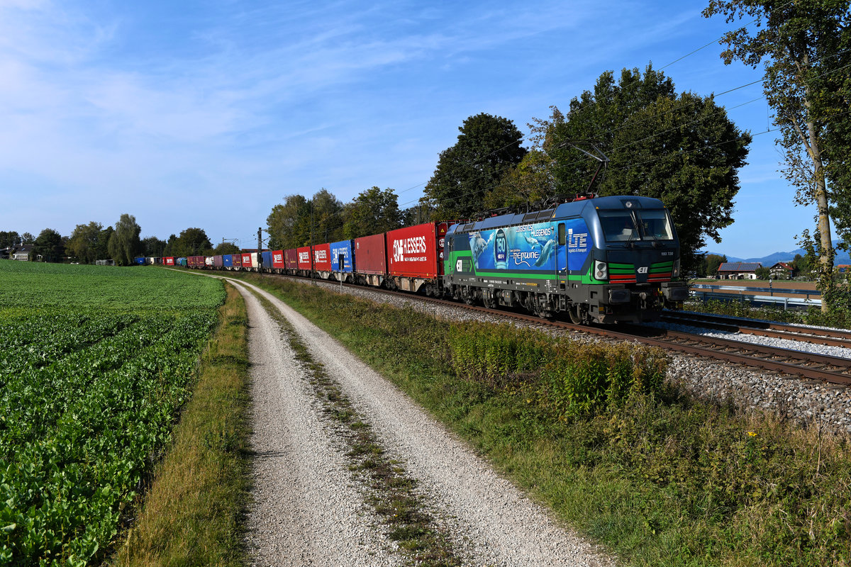 Vor der TXL-Leistung DGS 43949 von Wanne-Eickel nach Wien Freudenau Hafen werden zumeist ELL Vectrons eingesetzt, gerne diejenigen mit der Seitenwerbung "We love to connect". Am 01. Oktober 2020 gab es mit der "OFFROAD" 193 555 eine erfreuliche Abwechslung, die ihr Haupteinsatzgebiet im Italienverkehr hat und somit eher selten auf der Donau-Achse zu beobachten ist. Bei Langenisarhofen konnte ich die gelungene Werbelok mit dem zumeist mit Aufliegern der Spedition LKW Walter beladenen KLV aufnehmen.
