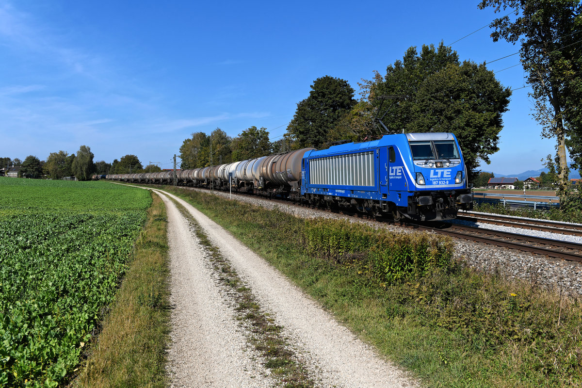 Mit einem Kesselwagenzug nach Österreich war die 187 932 der LTE am 01. Oktober 2020 unterwegs. Bei Langenisarhofen in Niederbayern konnte ich die Leistung fotografieren.
