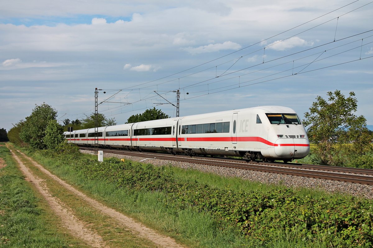 Am späten Nachmittag des 03.05.2020 war 403 502-8 "Hansestadt Lübeck" auf dem Weg von Basel SBB nach Köln Hbf, als dieser nördlich von Hügelheim über die Rheintalbahn durchs Markgräflerland in Richtung Freiburg (Breisgau) fuhr.