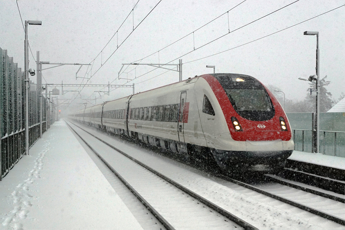 RABDe 500 039 "Auguste Piccard" als ICN 5 St.Gallen-Lausanne anlässlich der Bahnhofsdurchfahrt Solothurn-Allmend am 12. Januar 2021. Foto: Walter Ruetsch