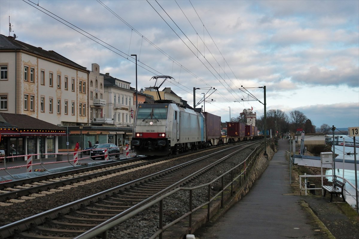 Mein erster Millionenzug dieses Jahr, gezogen wird er von der 185 286-2 am 13.1.2021 durch Neckargerach gen Heidelberg.