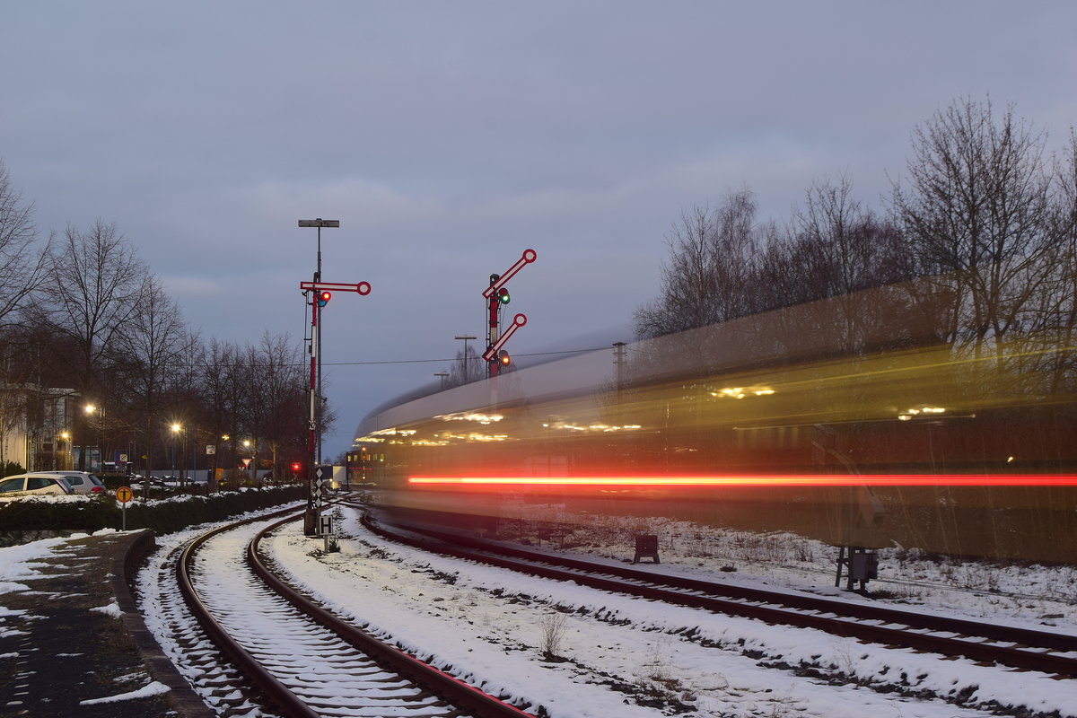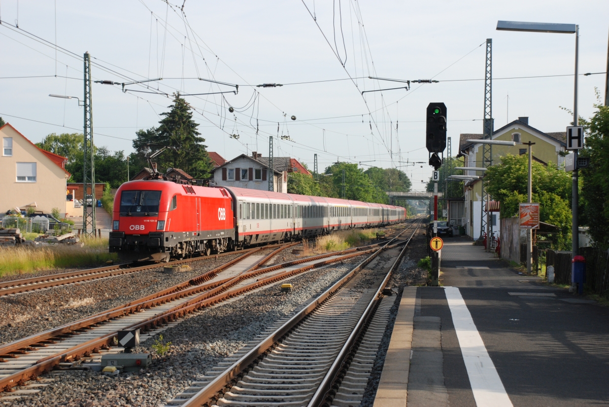 Unterdessen läuft der Verkehr in nördlicher Richtung über Gleis 1, das gerade von einem anderen ICE-T befahren wird.
