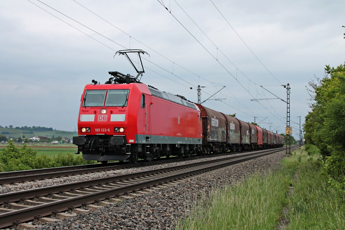 Mit dem kurzen EZ 45000 (Chiasso Smistamento - Mannheim Rbf) fuhr am Nachmittag des 14.05.2020 die 185 133-6 nördlich von Hügelheim über die KBS 702 durchs Rheintal in Richtung Freiburg (Breisgau).