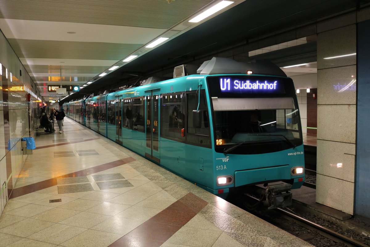 VGF U4 Wagen 513 am 16.01.21 als U1 in Frankfurt Nordwestzentrum