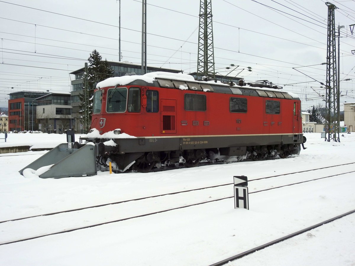 Für die Re 430 363-2 hat bald die letzte Stunde geschlagen. Am 20.12.2020 steht die Lok auf einem Nebengleis beim Bahnhof Kaiseraugst.