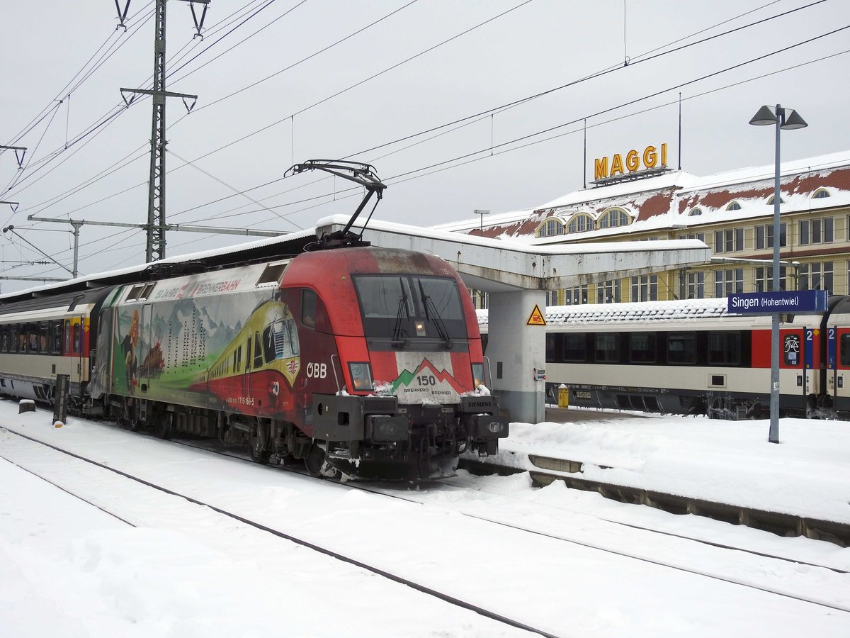 14.01.2021 die ersten Spotterbilder des Jahres 2021 und dann solch ein Schneetreiben. Kaum zu erkennen ist 1116 085-5 im Bahnhof Dornbirn.