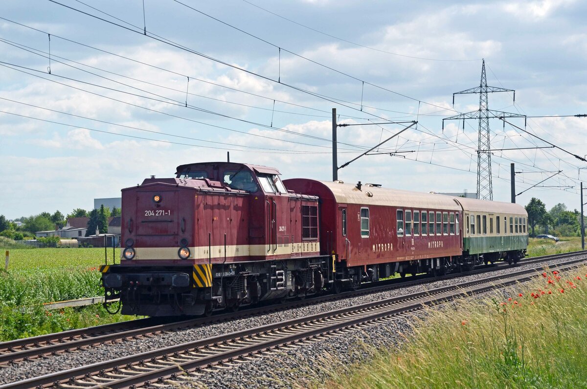 204 271 (203 226) der Press rollte am 13.06.21 mit einem kurzem Sonderzug durch Braschwitz Richtung Magdeburg. Da der Speisewagen war besetzt war sollte es sich um eine Sonderfahrt gehandelt haben.