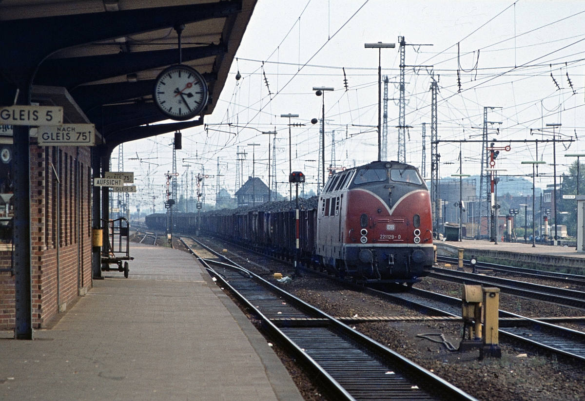 Hp 2 für 221 129 mit Kokszug nach Emden (Rheine 6.8.1979). Einige meiner alten Dias (meist auf Agfa CT 18 Film) verfärben sich sehr stark, so auch dieses. Deshalb Konvertierung in SW.
