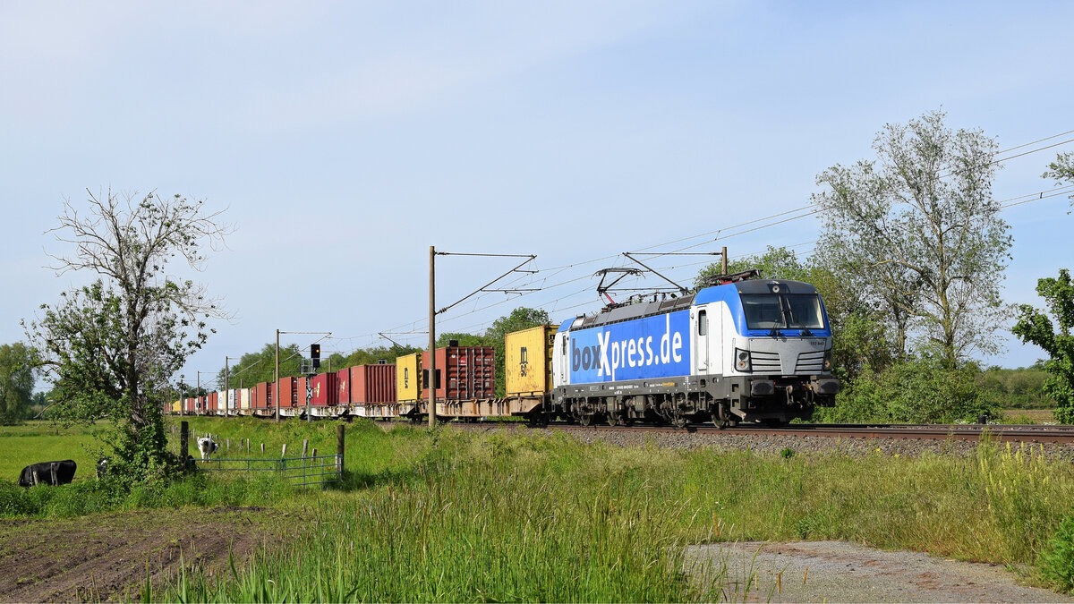 boxXpress 193 840 mit Containerzug in Richtung Osnabrück (Hüde, 01.06.2021).