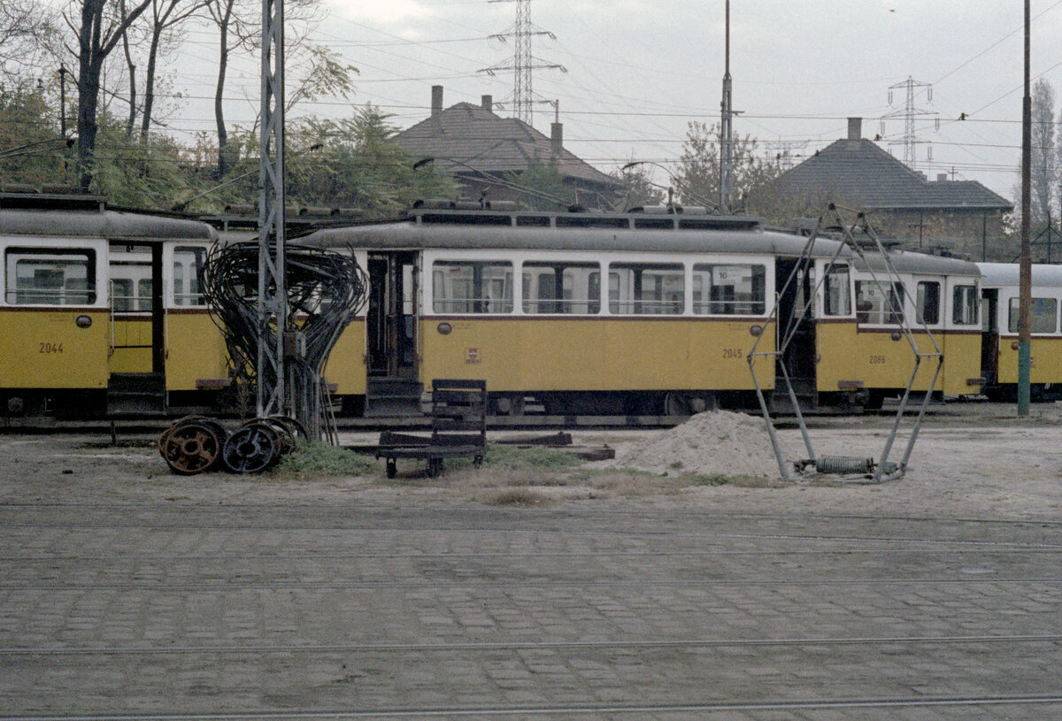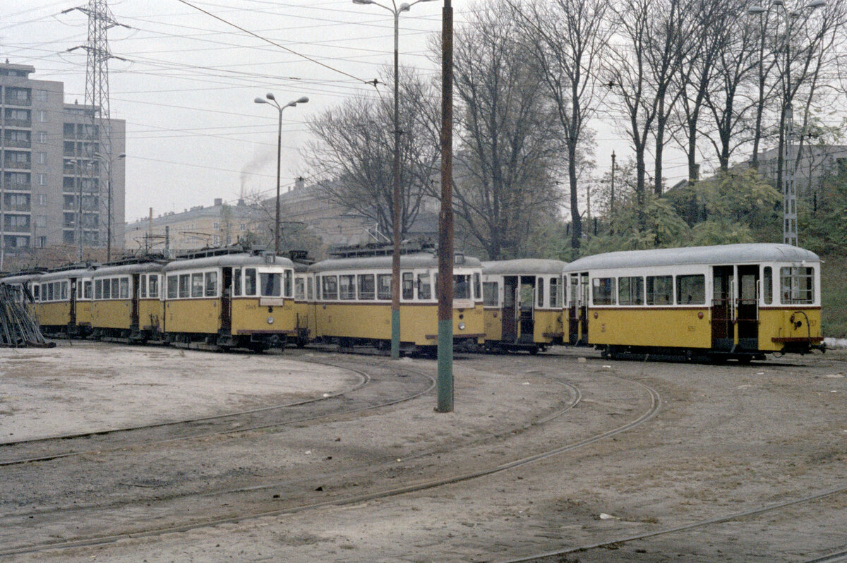 Budapest BKV: Impressionen vom Straßenbahnbetriebsbahnhof Ferencváros Kocsiszin im Oktober 1979: Tw 1936 und Tw 2062. - Scan eines Farbnegativs. Film: Kodak Kodacolor II. Kamera: Minolta SRT-101.
