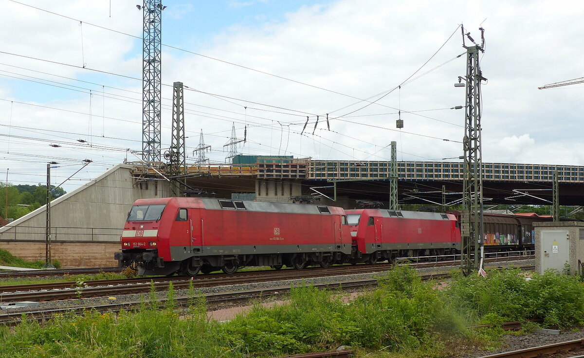 DB 152 064-2 + 152 xxx mit Schiebewandwagen Richtung Kassel, am 30.06.2021 in Bebra.