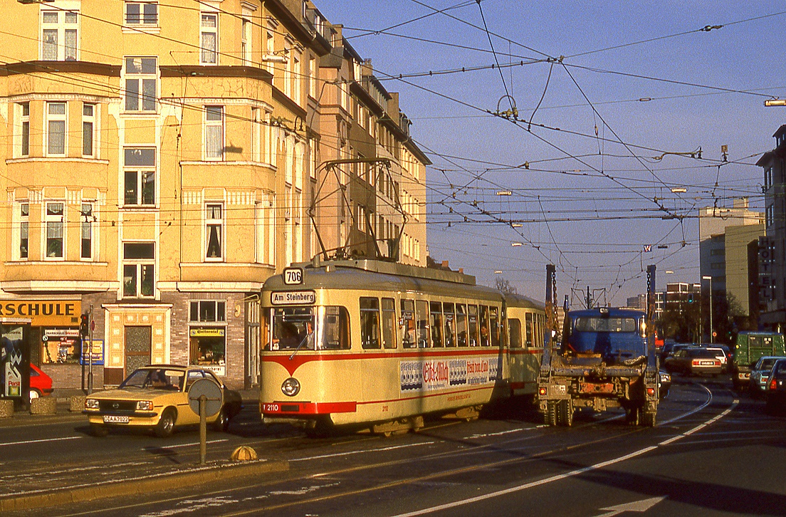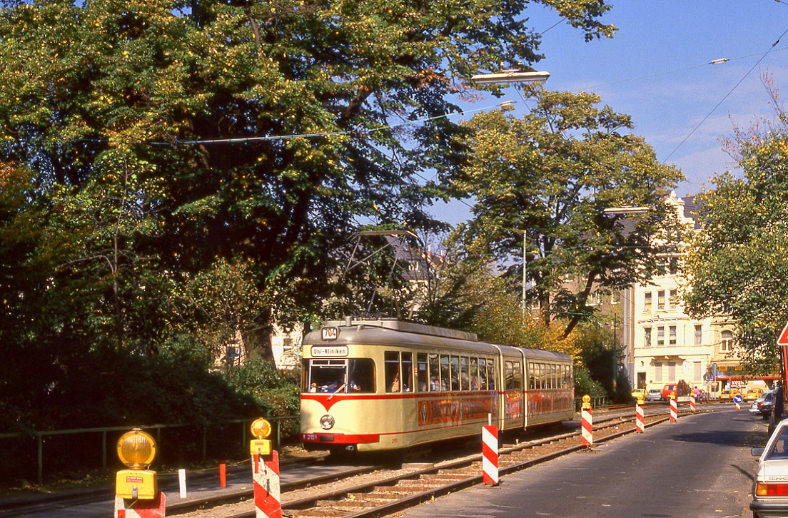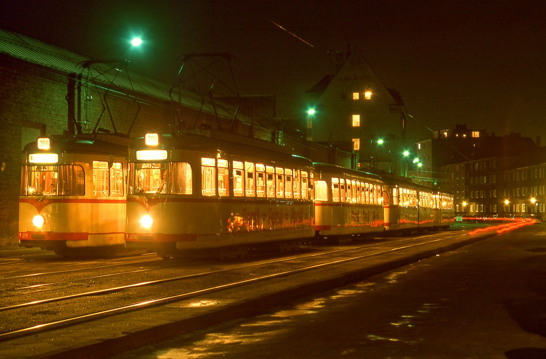 Graz GVB Triebwagen 212 (aus der Serie 201-250, SGP 1949-1952) Remise (I) / Straßenbahnbetriebsbahnhof Steyrergasse im Oktober 1979. - Scan eines Farbnegativs. Film: Kodak Kodacolor II. Kamera: Minolta SRT-101.
