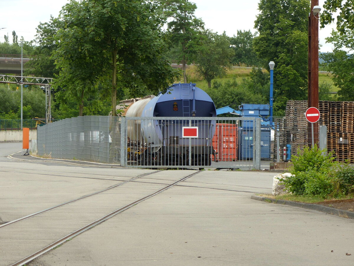 Eine Schienenkreuzung am 30.06.2021 bei Krug Logistik in Bebra.