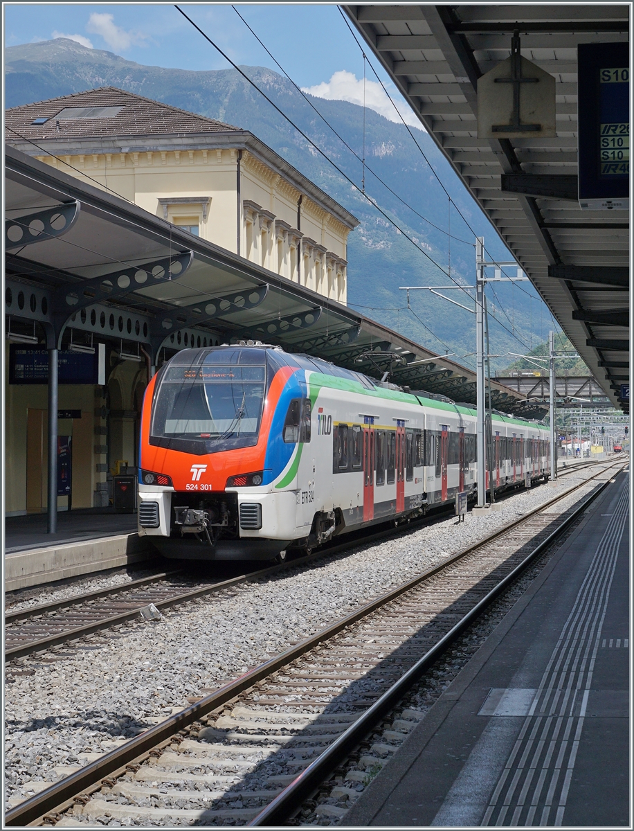 In der TILO Farbgebung gefallen mir die Flirt3 besonders gut: Der SBB TILO RABe 524 301 wartet in Bellinzona auf die Weiterfahrt nach Castione Arbedo.
