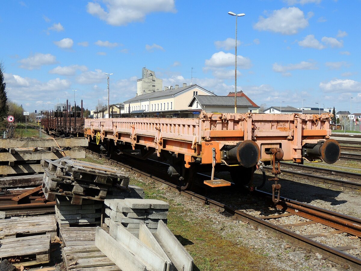 Materialwagen_40 81 9415 286-9(Heimatbf-Landeck), wartet am Bhf. Ried auf eine Verwendung; 210404