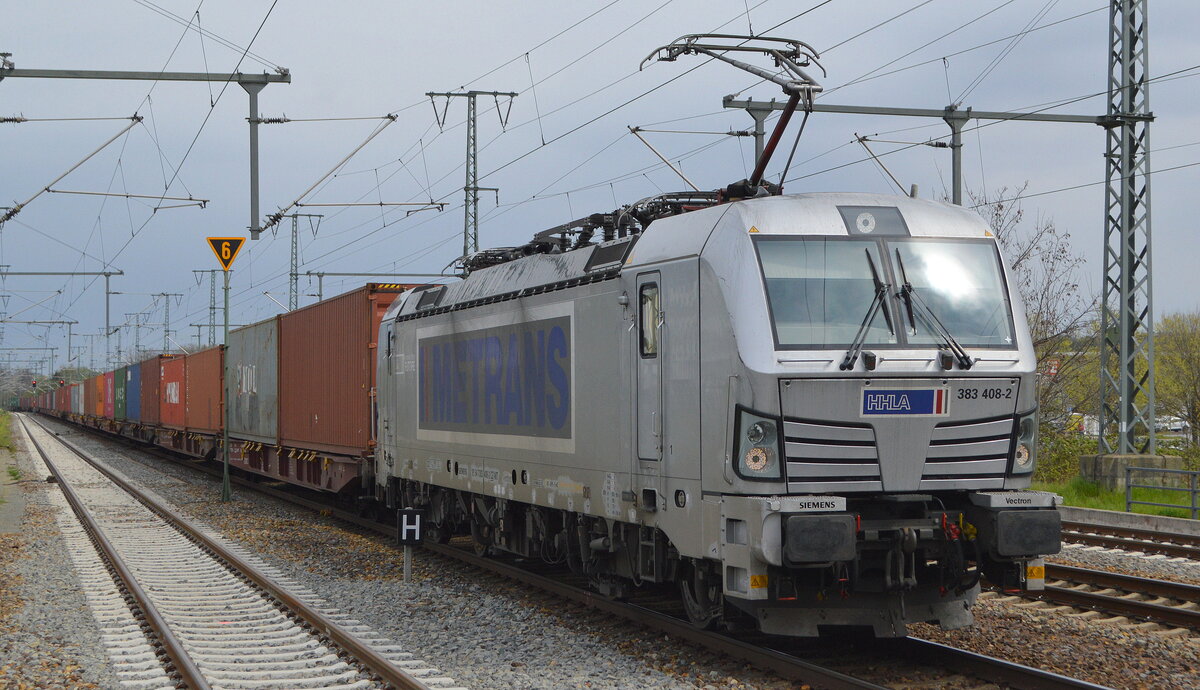 METRANS a.s., Praha [CZ] mit "383 408-2" [NVR-Nummer: 91 54 7383 408-2 CZ-MT] und Containerzug am 06.05.21 Durchfahrt Bf. Golm (Potsdam).