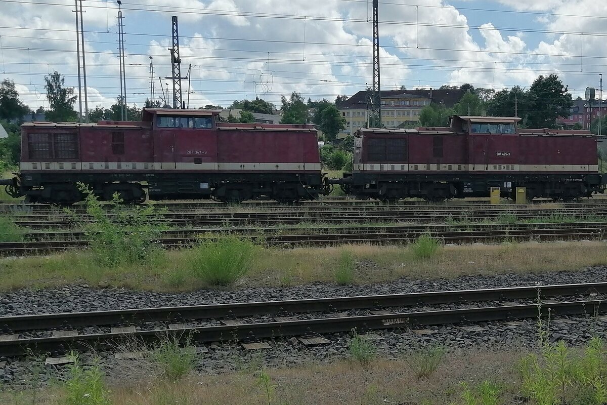 PRESS "V 100" 204 347-9 und 204 425-3 am 29.06.2021 in der Abstellung in Hof Hbf