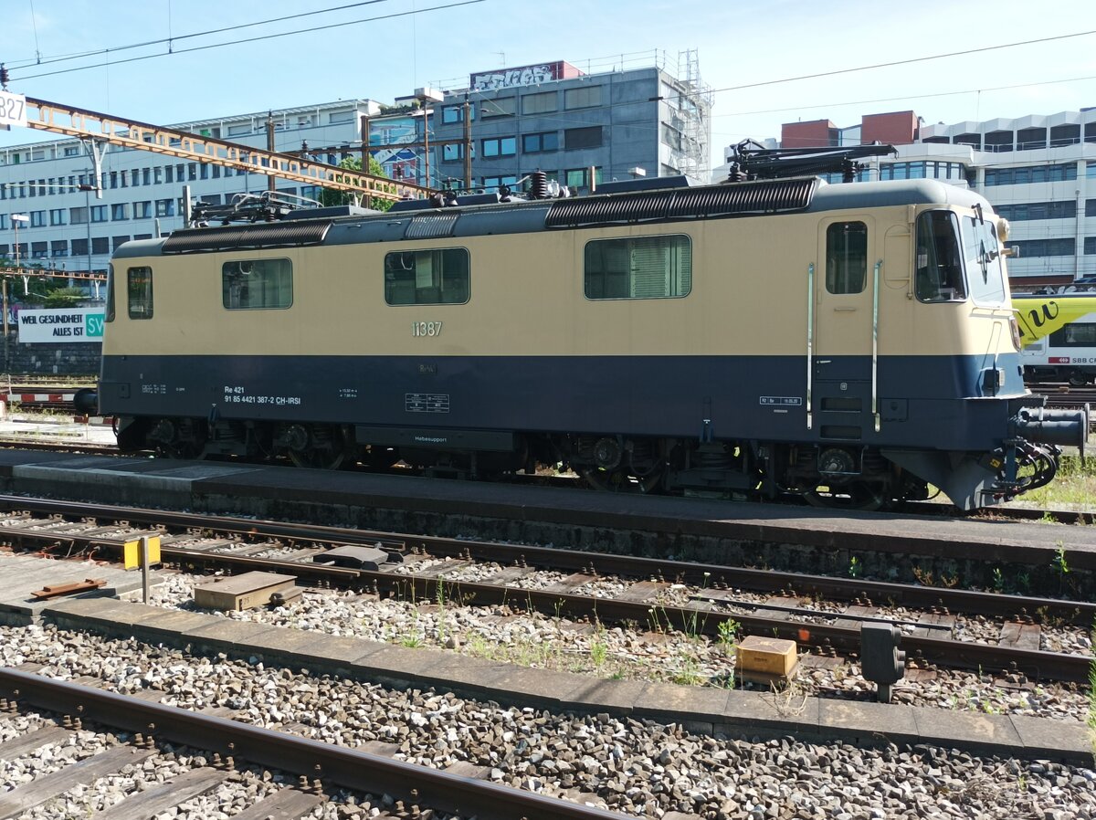 Re 421 387-2 CH IRSI von Vorne abgesellt in Basel SBB Datum 02.07.2021