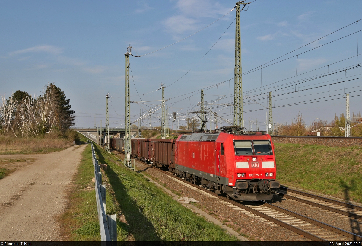 Hochbordwagenzug mit 185 175-7 unterwegs in Halle (Saale), Birkhahnweg, in südlicher Richtung.
