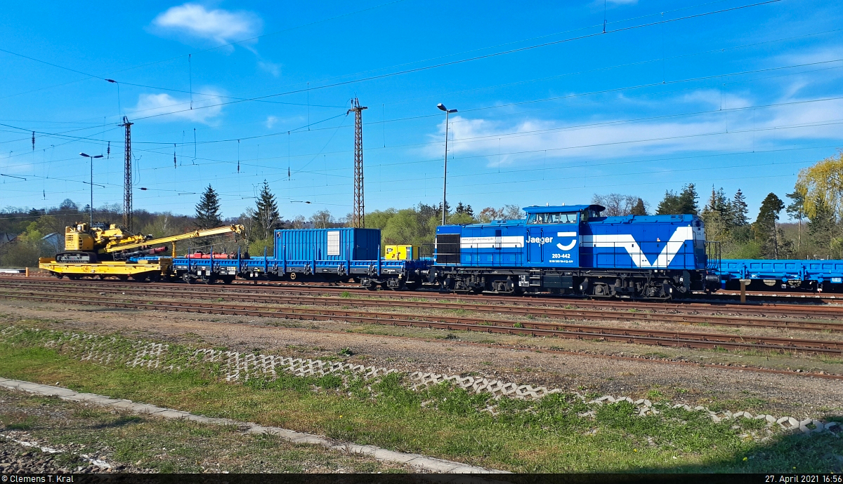 702 203 (163 003-3) von der Netz Instandhaltung ist am 18.05.2021 bei Friedland in Richtung Kassel unterwegs.