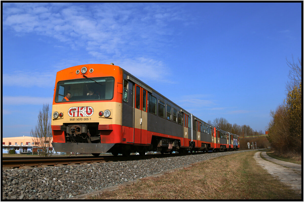 Steuerwagen Bt 226 der Gruyère–Fribourg–Morat (GFM heute tpc) in Montbovon 797 m, im April 2003.
