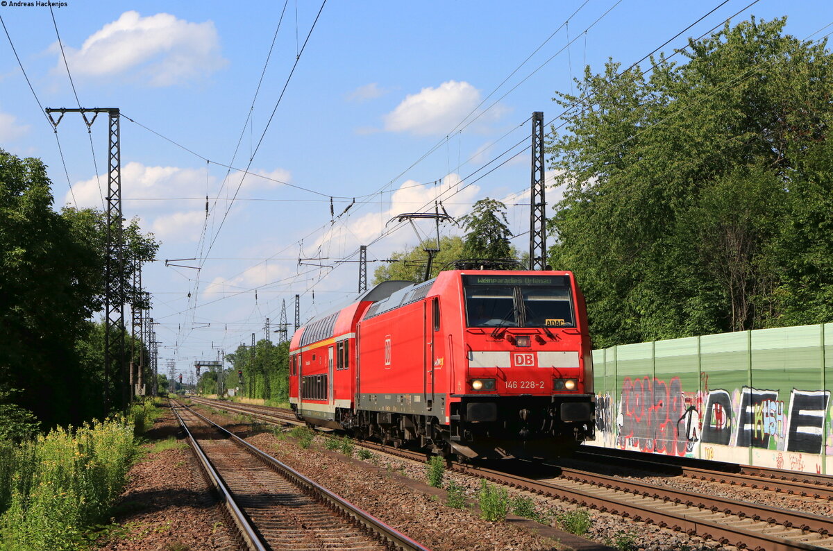 RE30 Bremen Hbf mit 146 267 und Dostos in Hamburg Hbf am. 26.7.21