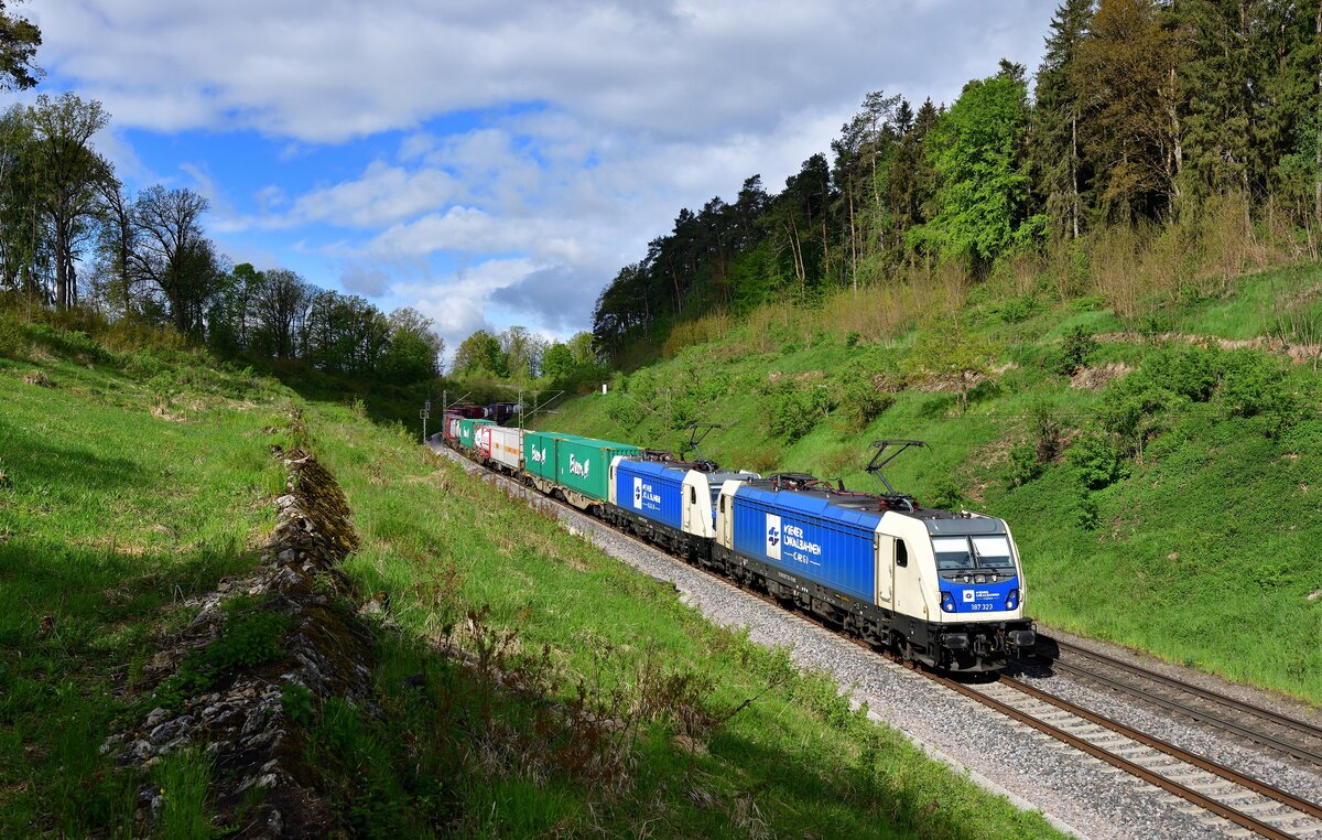 187 323 + 187 321 mit einem KLV am 22.05.2021 bei Sinngrün.