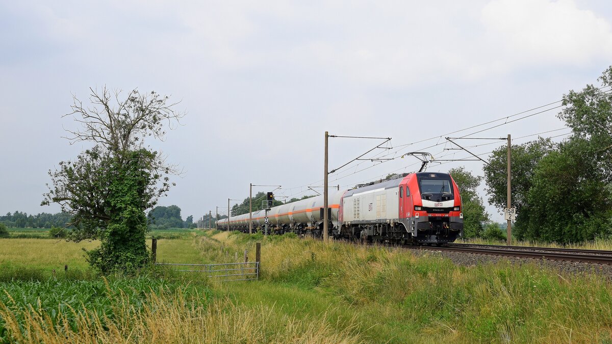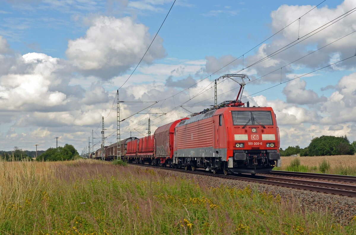 189 008 rollte mit einem gemischten Güterzug am 07.07.21 durch Gräfenhainichen Richtung Bitterfeld.