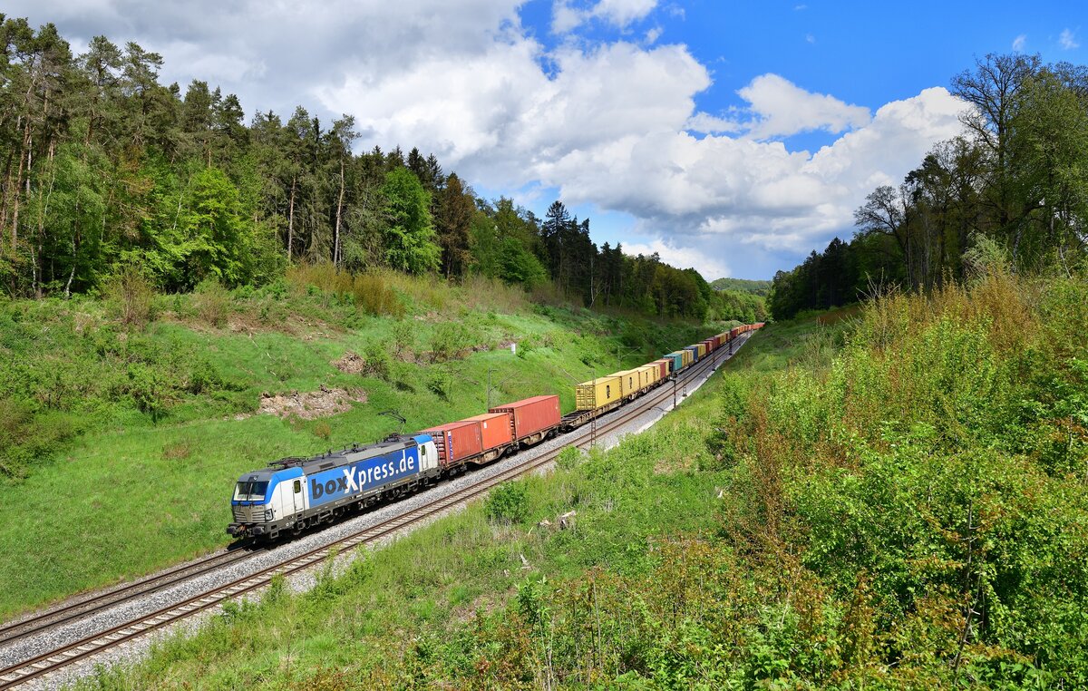 Mit dem Audi-Logistikzug GA 47123 von Ingolstadt nach Györ war am 11. Mai 2021 die ungarntaugliche 1116.047 unterwegs. Bei Einöd in Niederbayern konnte ich die Leistung, mit der Fahrzeugteile zwischen den Werken des Automobilproduzenten Audi transportiert werden, in frühlingshafter Umgebung aufnehmen.