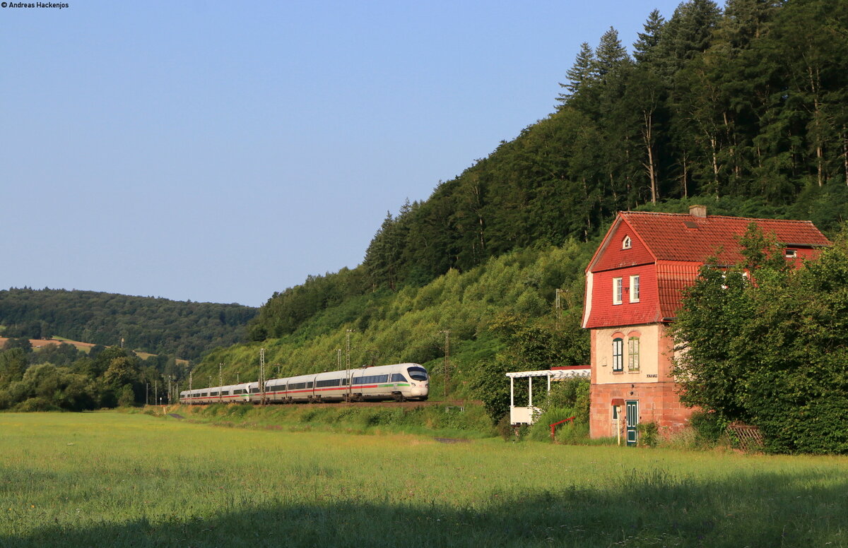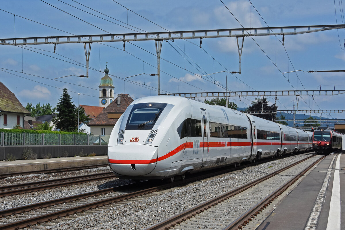 ICE 4 0812 040-5 durchfährt den Bahnhof Gelterkinden. Die Aufnahme stammt vom 20.07.2021.