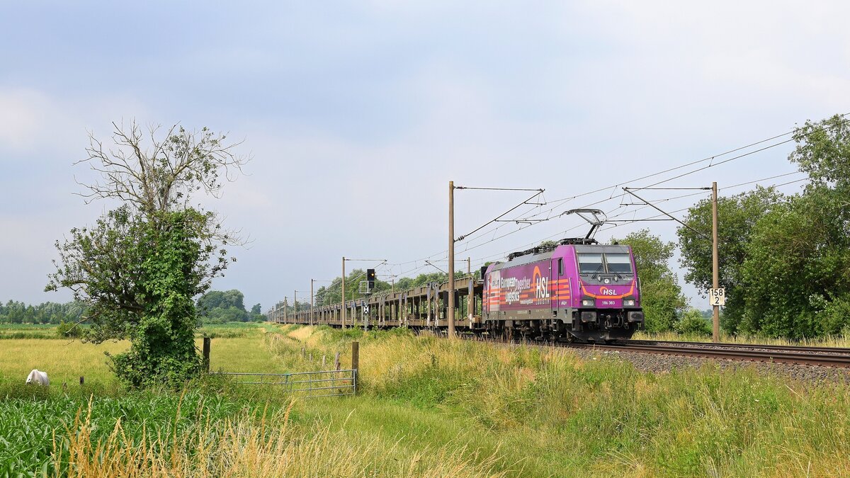 "Welcome to the Jungle" -Guns n' Roses. "Oh Jungleland" -Simple Minds."A Forest"-The Cure. Dass sind nür drei Musikstücke an den Mann denkt wann Mann NS 186 018 in solch einer Landschaft fotografiert. Am 23 Juli 2021 wurde dieses Bild gemacht bei Tilburg-Reeshof.