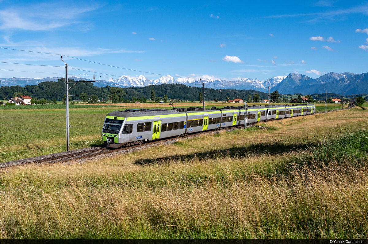 Am 05.07.2021 ist BLS RABe 525 024 und RABe 525 027 unterwegs als S44 16469 von Thun nach Burgdorf und konnte hier bei Kaufdorf aufgenommen werden.