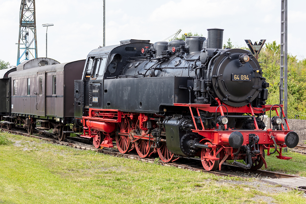 Lok 86 1744 und Lok 114 703 stehen in Putbus bereit für Fahrten eines historischen Reisezugs zwischen Bergen und Lauterbach Mole. Des Weiteren soll noch eine Ferkeltaxi zum Einsatz kommen. - 28.07.2021