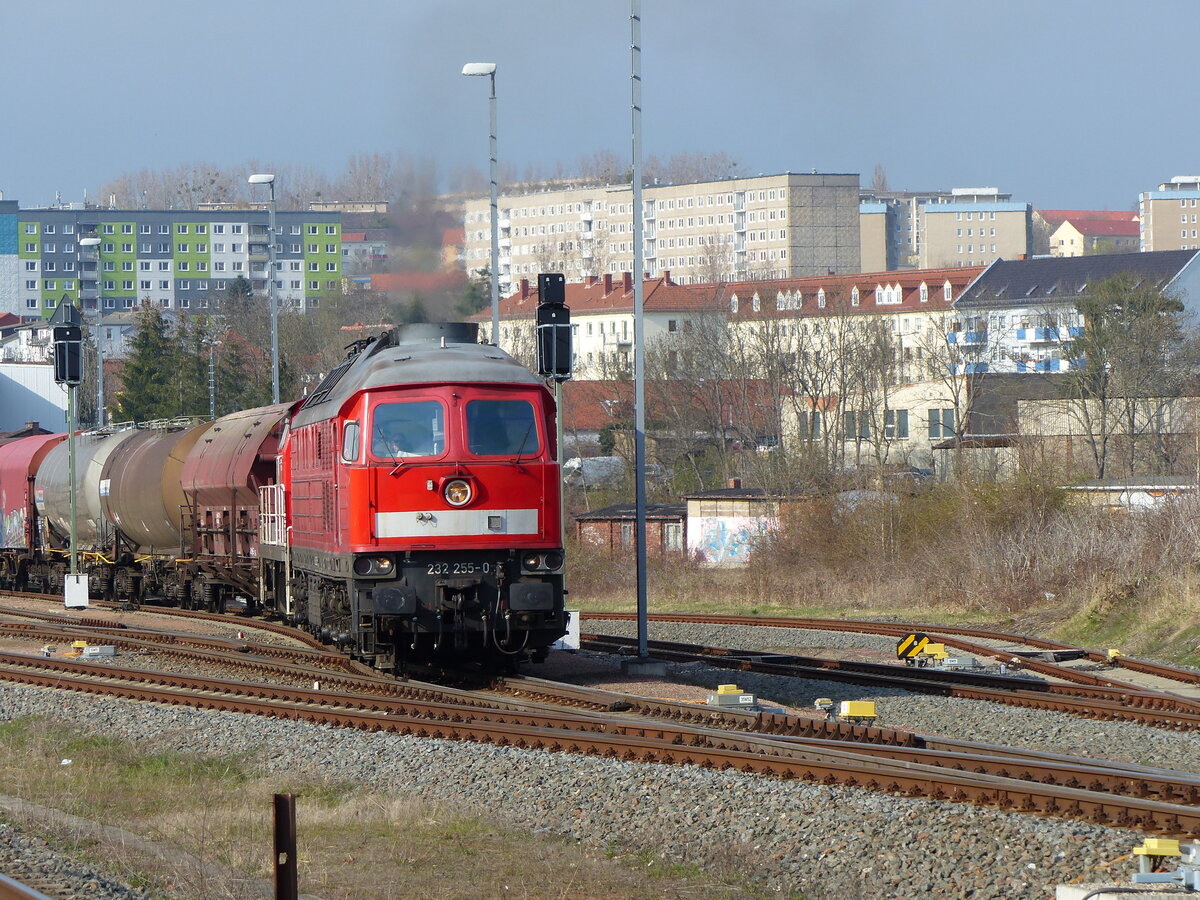 EGP 247 906-1 mit einem Containerzug abfahrbereit in Gera am 9.6.2021. Daneben der IC nach Kassel mit der 245 022 als Zugpferd.
