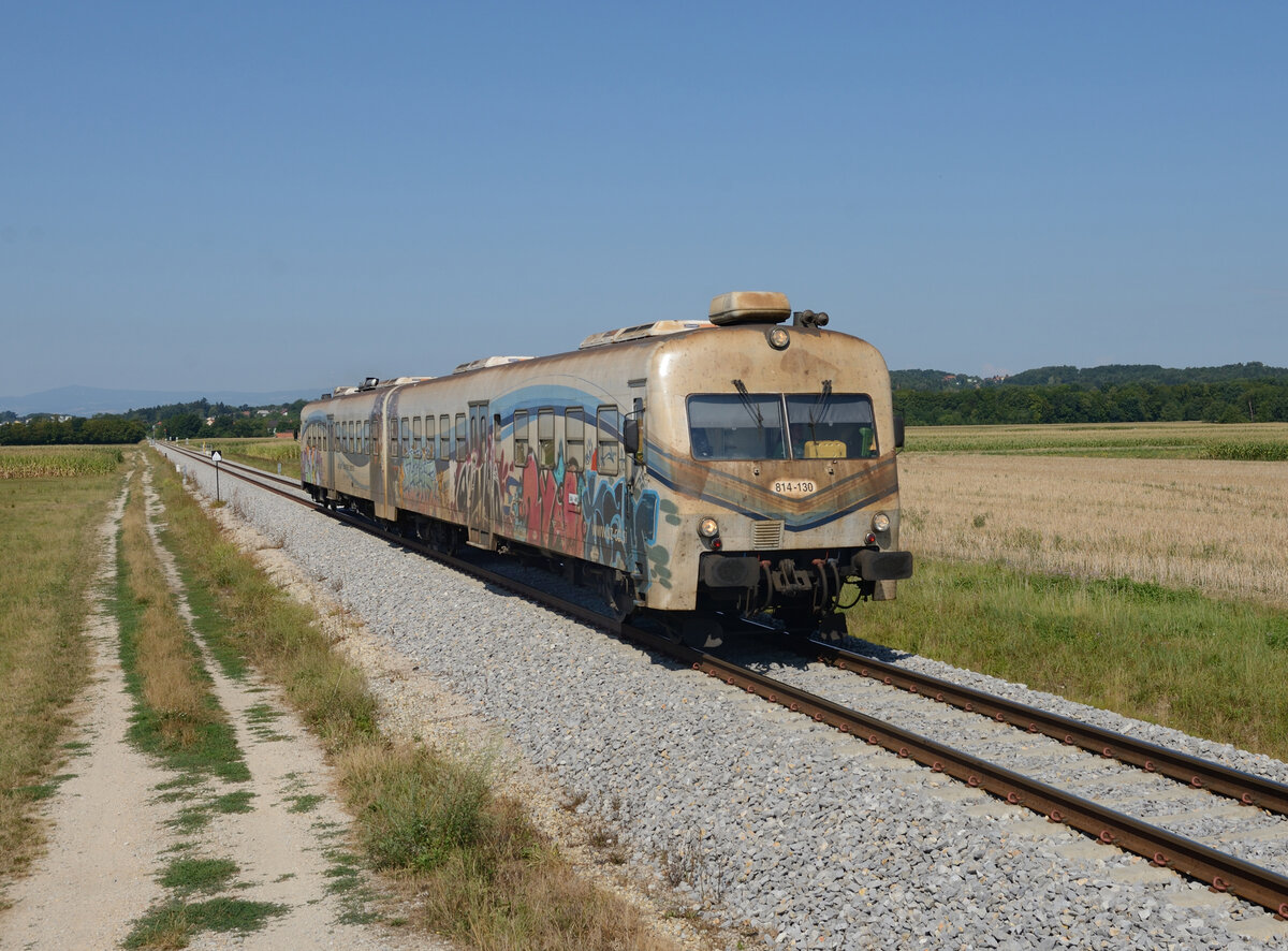 Der verunstaltete Werbetriebwagen von FIAT SŽ 814 130 war am heißen 12. August 2013 als R 640 von Maribor noch Murska Sobota unterwegs und wurde von mir in Podvinci fotografiert. Mittlerweile ist die Strecke elektrifiziert und der Regionalverkehr wird von Triebfahrzeugen der Baureihe 312 (Siemens Desiro) dominiert.