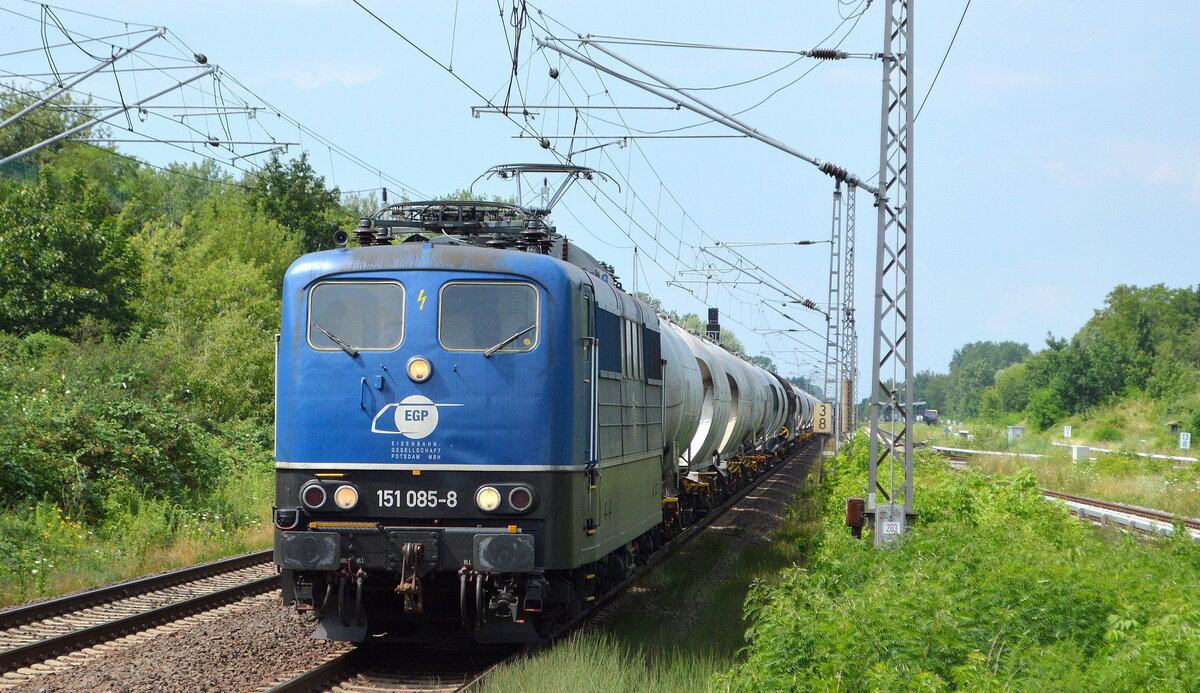 EGP mit "151 085-8" (NVR: "91 80 6 151 085-8 D-EGP") und Zementzug am 26.07.21 Durchfahrt Bf. Berlin-Hohenschönhausen. Die 151 085-8 ist erst seit Nov. 2020 im Fuhrpark der EGP und ich sah sie heute sogar zum ersten Mal mit dieser Relation.