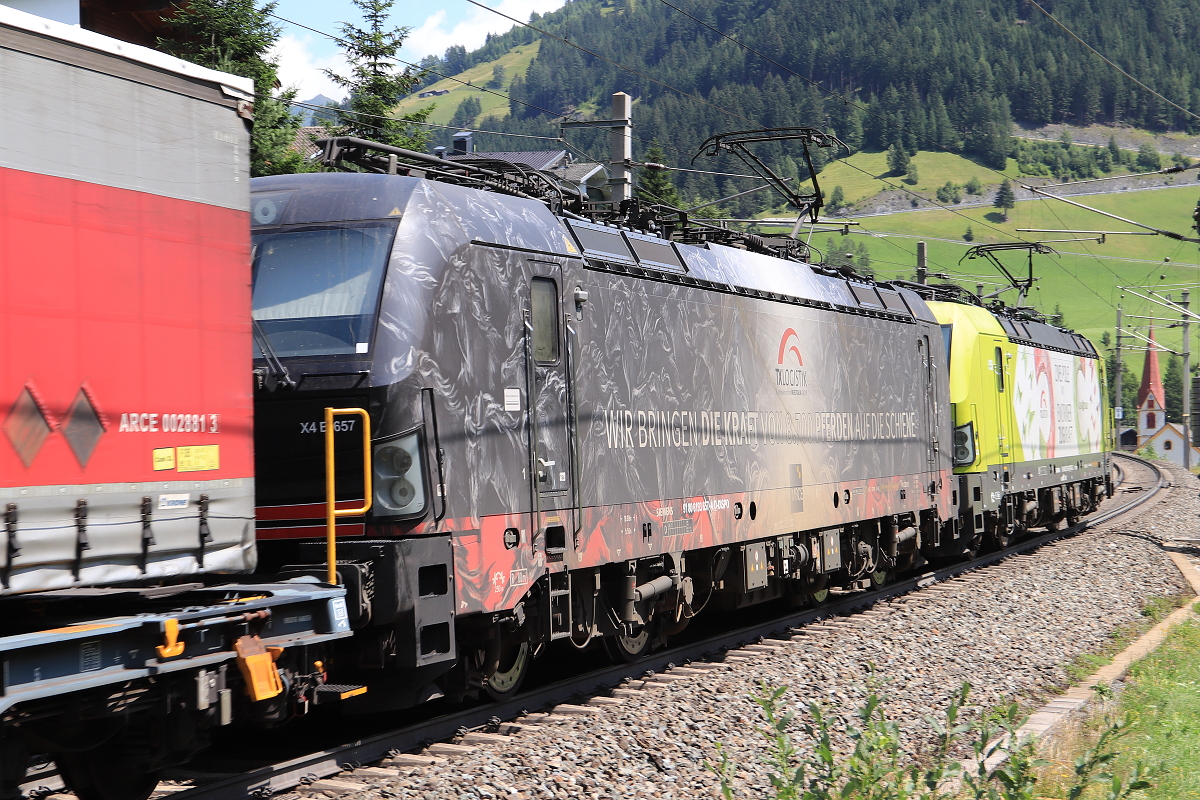 Ein verspäteter Nachschuss der zwei TXL Logistik Vectron's vor einem KLV Zug Richtung Brenner/Italien. Hier kurz vor dem Bahnhof St. Jodok am Brenner am 23.07.2021
