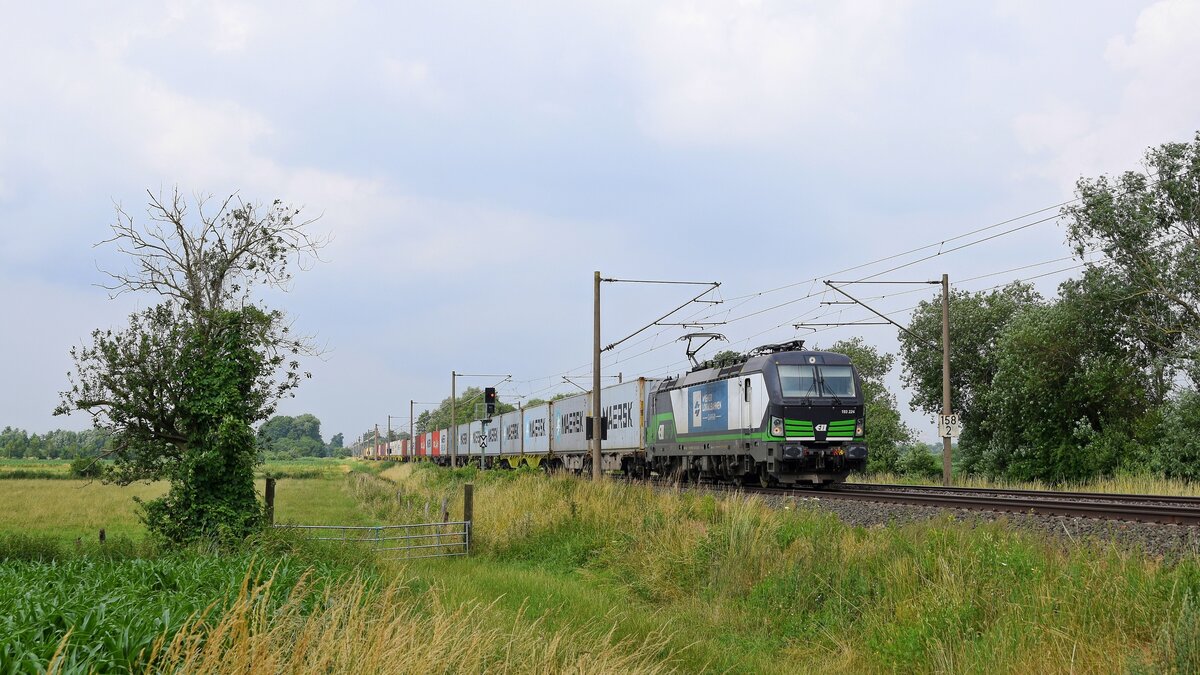 RFO 189 213 durchfahrt mit deren KLV Hulten am 9 Juli 2021 und zieht auch die Polnische Flagge voran. Die andere Kabine tragt der Niederländische Flagge und dass Alles stammt aus 2013, wann die 189 212 und 213 beide bei ERS dienten und wegen der damals neue KLV zwischen Rotterdam-Kijfhoek und Poznan-Franowo Aufkleber bekamen. Die Lokseiten haben ein Design wobei magischerweise Rotterdam und Poznan sich treffen -ein Seite bei Tageslicht und die andere Seite nachts -so dass Mann die Lok mit vier Motiven fotografieren kann. ERS besteht leider nicht mehr; die 212 ist bei LTE in dienst und die 213 macht Spass bei RFO.