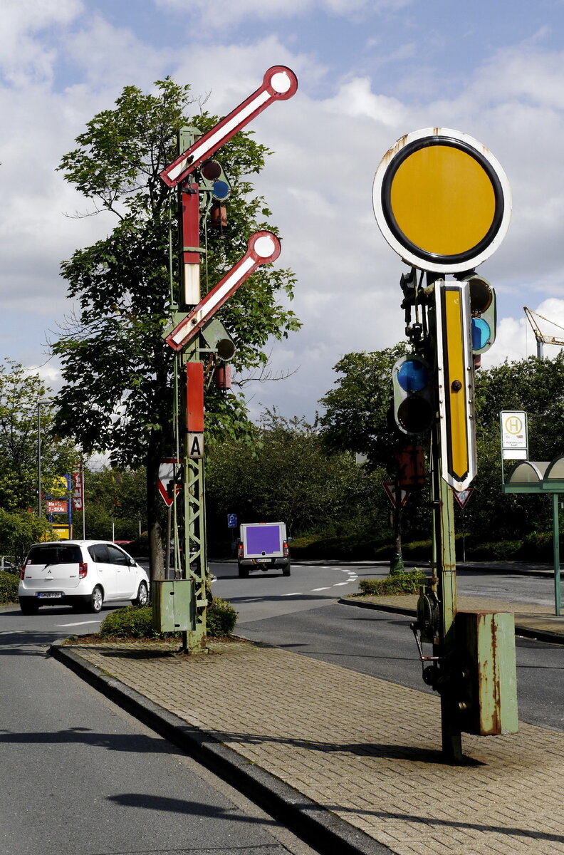 Formsignale des ehemaligen DB-Bahnhofs Radevormwald (KBS 229b) am jetzigen Busbahnhof. Aufnahme vom 28.7.21.