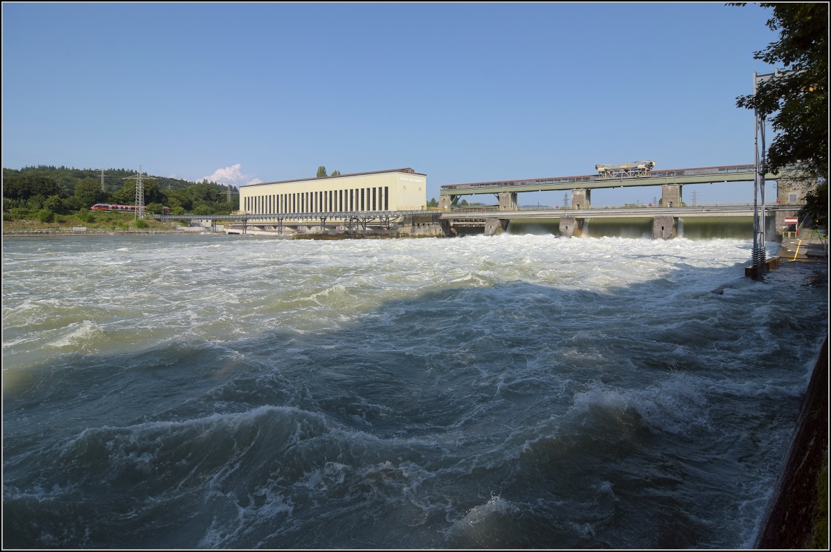 Zwischen dem Badehaus von Lindau-Aeschach und dem Gebäude des Posten 48 verlässt der von Bludenz nach Bochum fahrende IC 118  BODENSEE , Lindau (23.06.2021)