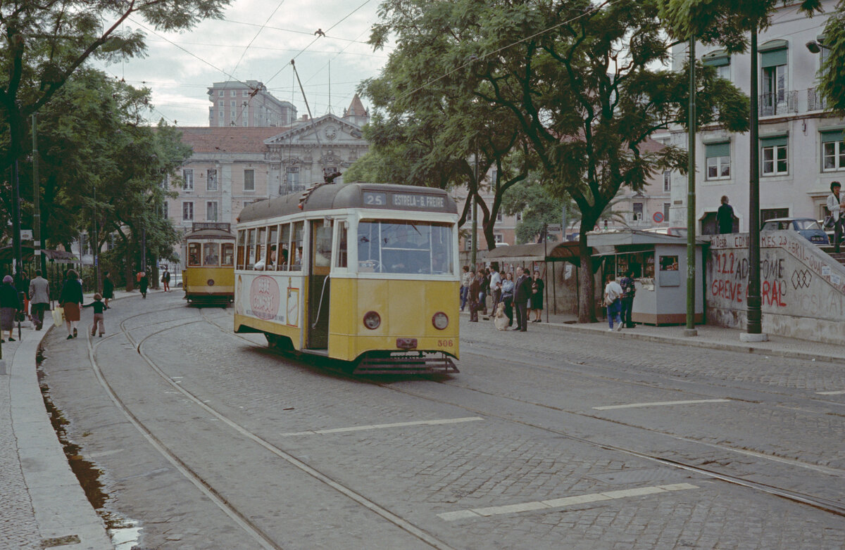 Lisboa / Lissabon CARRIS Tw 506 (SL 25) Largo do Rato im Oktober 1982. - Scan eines Farbnegativs. Film: Kodak Safety Film 5035. Kamera: Minolta SRT-101.