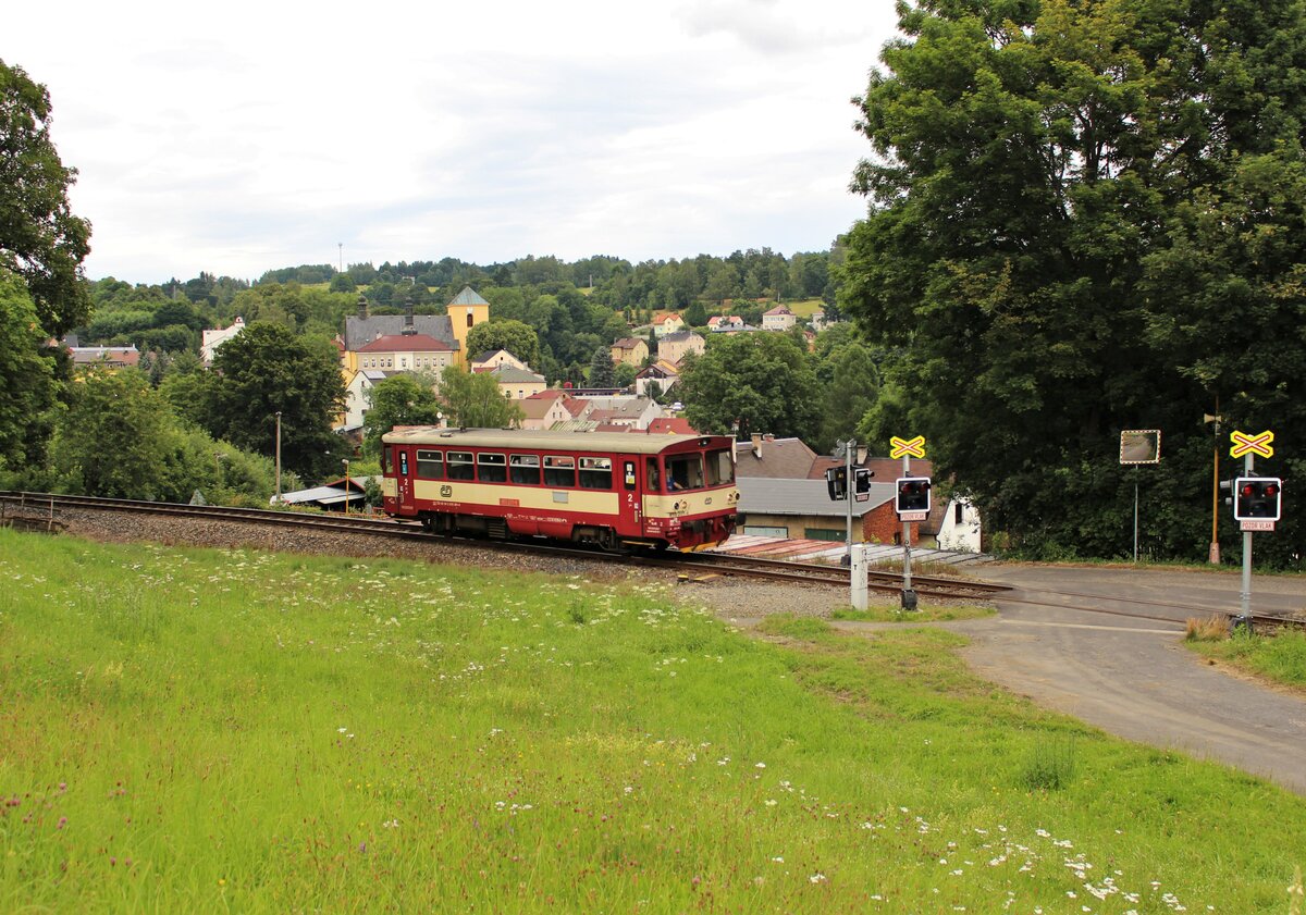 Man braucht schon viel Glück einen 810er von Cheb nach Luby u Chebu zu erwischen. Am 26.07.21 klappte es endlich. 810 201 als Os 27213 bei Tršnice.