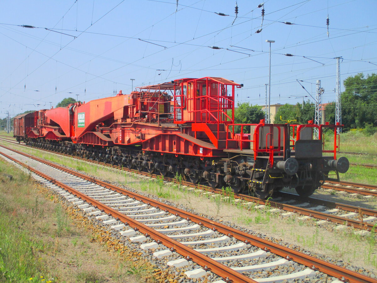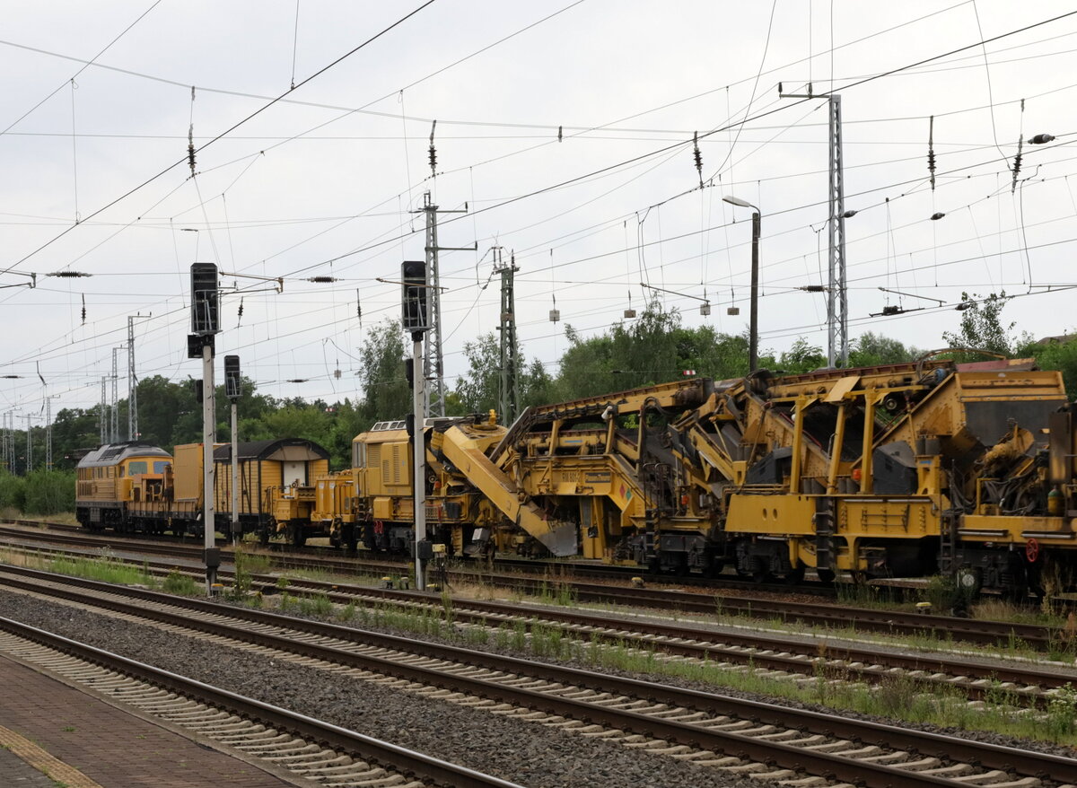 Nachschuß auf einen Gleisbauzug, in Elsterwerda einlaufend. 28.07.2021 14:43 Uhr.