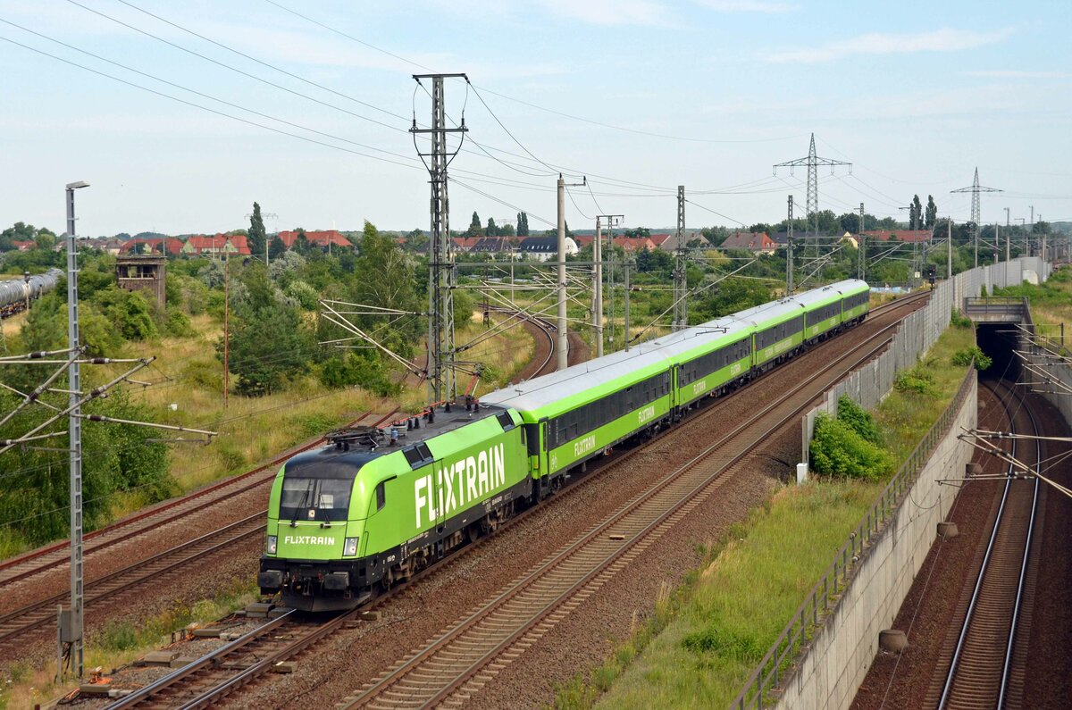 Mit dem FLX 32613 von Berlin nach Stuttgart rollt 182 521 am 11.07.21 durch Bitterfeld Richtung Halle(S).