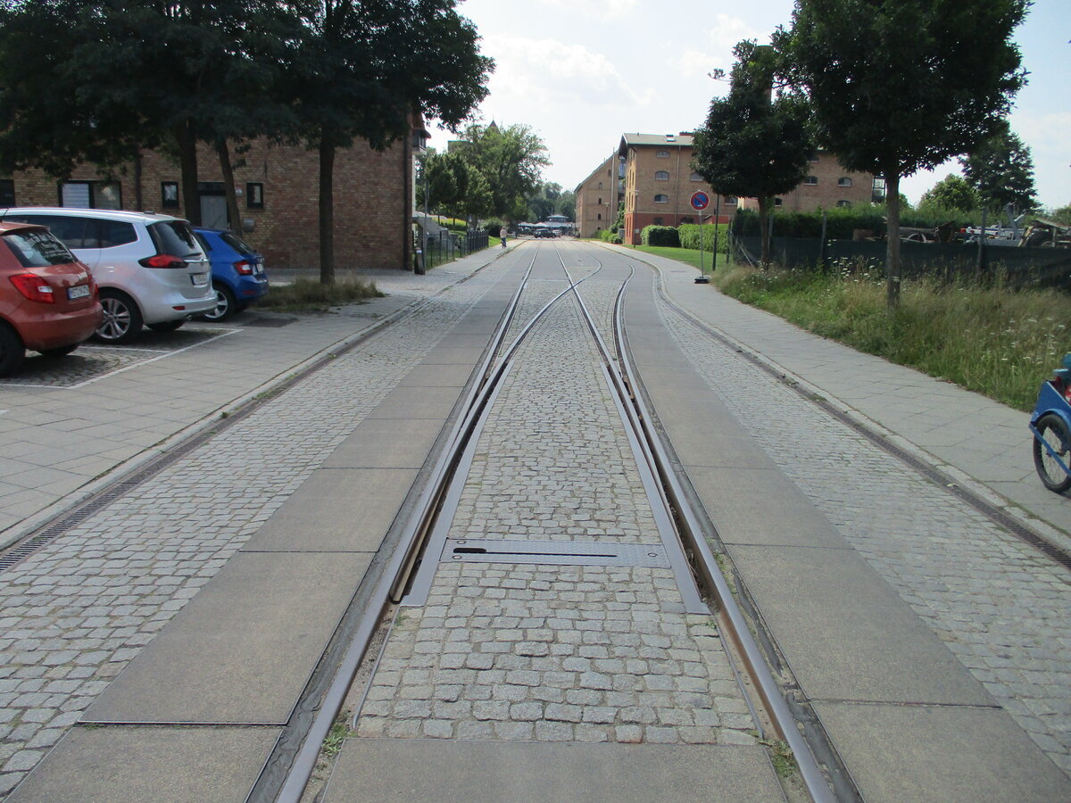 Mit der Übergabe aus Zschornewitz erreicht 275 820 der RBB am 11.07.21 Bitterfeld.