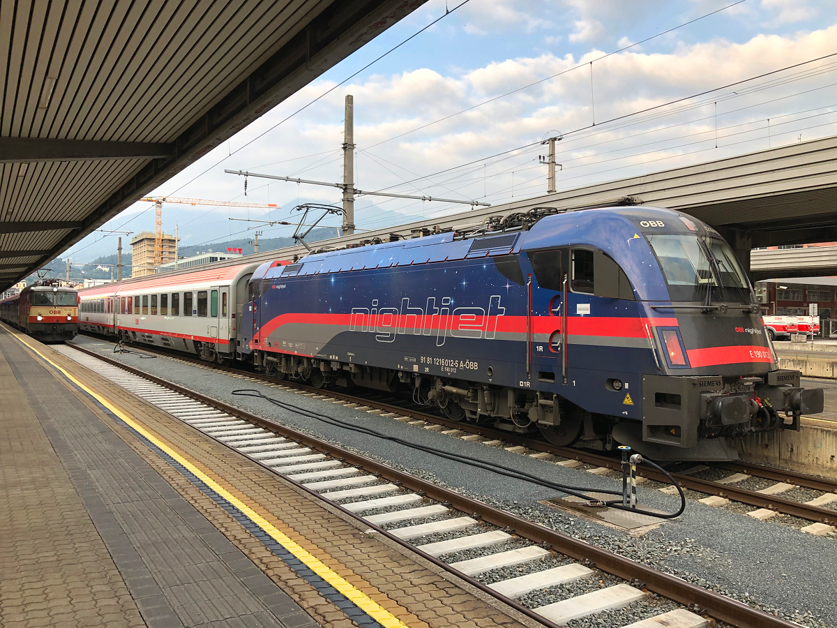 Graz. Die 1223 004 steht hier mit einem Autozug am 27.05.2021 in Graz Ostbahnhof-Messe