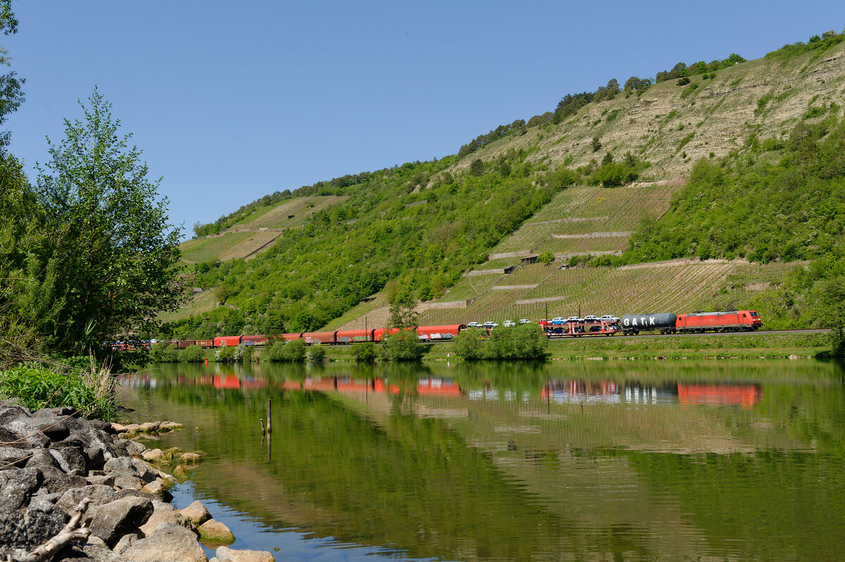 185 556 bei Oberlahnstein auf der rechten Rheinseite in Richtung Norden, 27.07.2021
