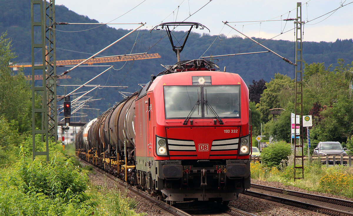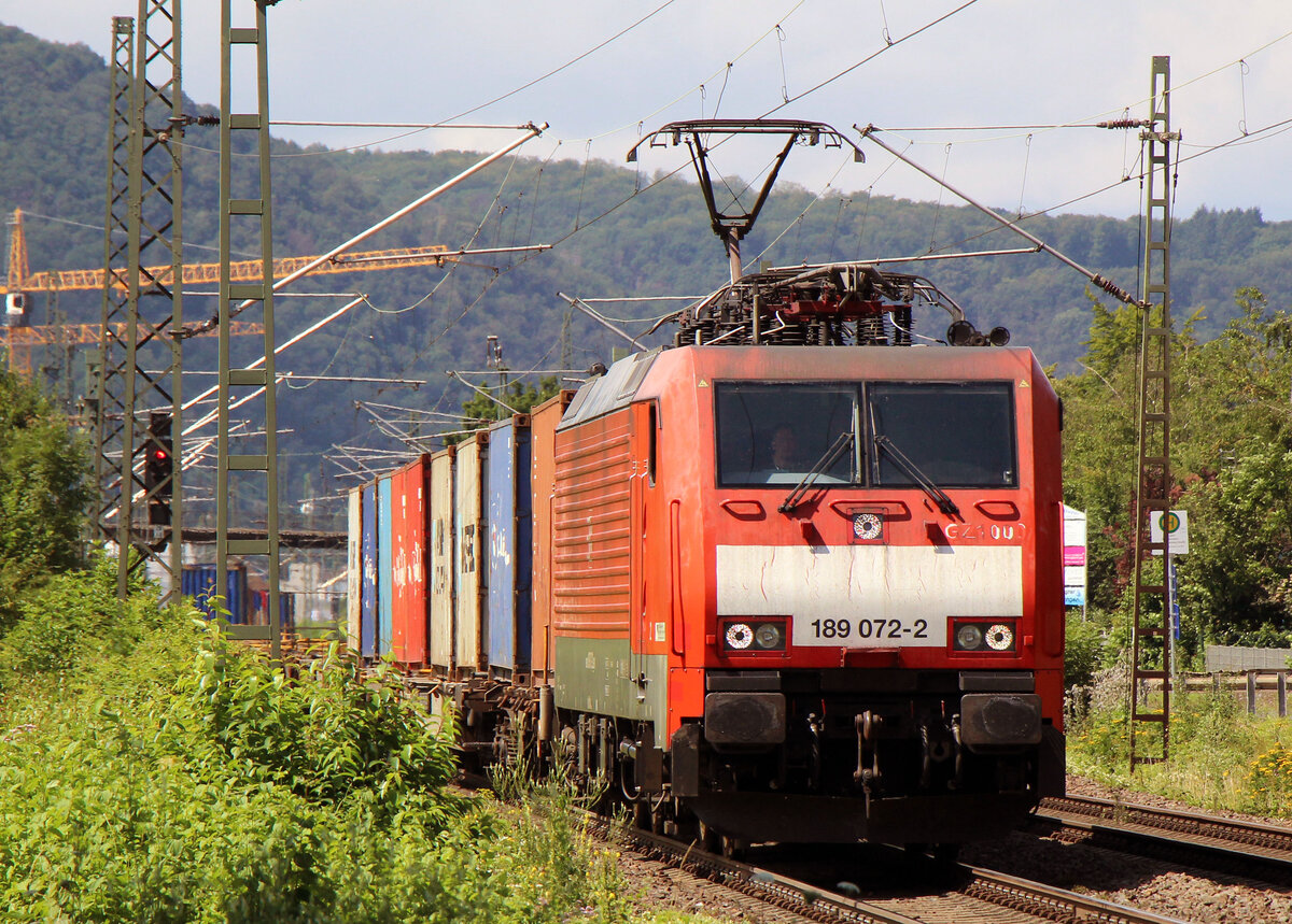 DB 189 072 auf der rechten Rheinstrecke bei Oberlahnstein am 28.07.2021 nordwärts.
